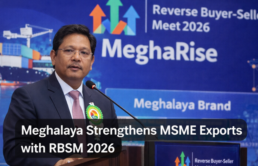 The Government of Meghalaya, in collaboration with the Federation of Indian Export Organisations (FIEO) and the Ministry of Commerce & Industry, Government of India, launched the Reverse Buyer-Seller Meet (RBSM) 2026 at the State Convention Centre in Shillong. Supported by the World Bank, the event aims to position Meghalaya as a key export hub in Northeast India.
